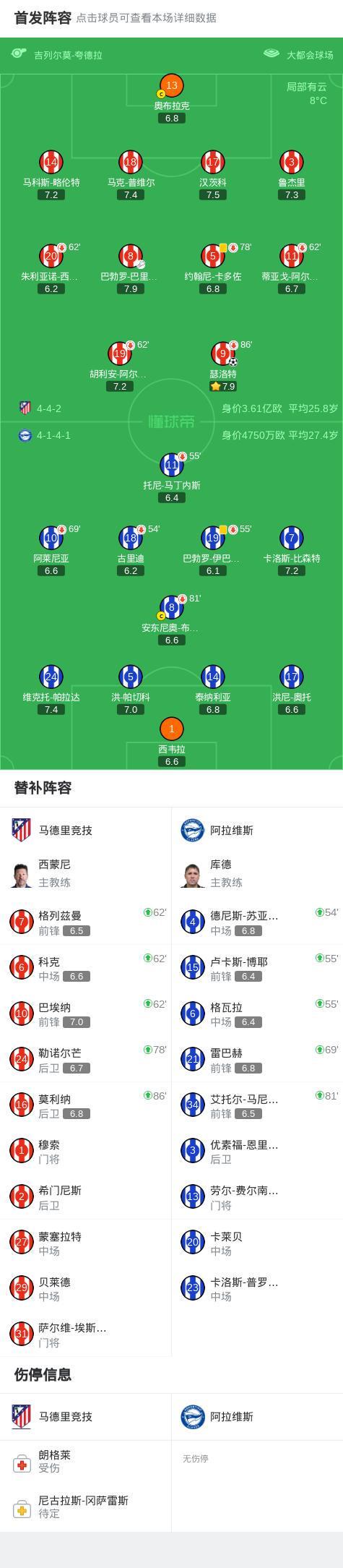 第48分钟,巴里奥斯传中,瑟洛特头槌破门,马竞1-0领先